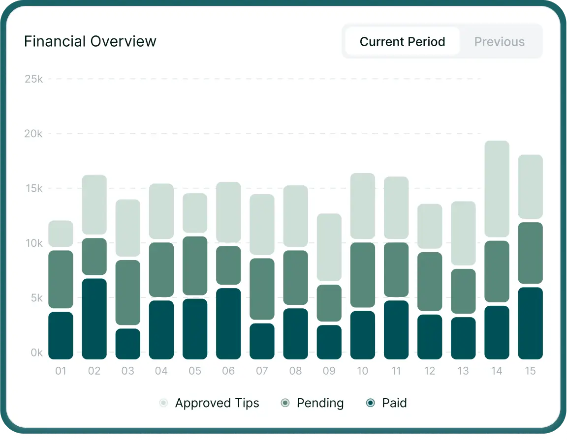 Every calculation is visible. Every dollar is traceable. Teams trust the process because they can see exactly how tips are distributed.